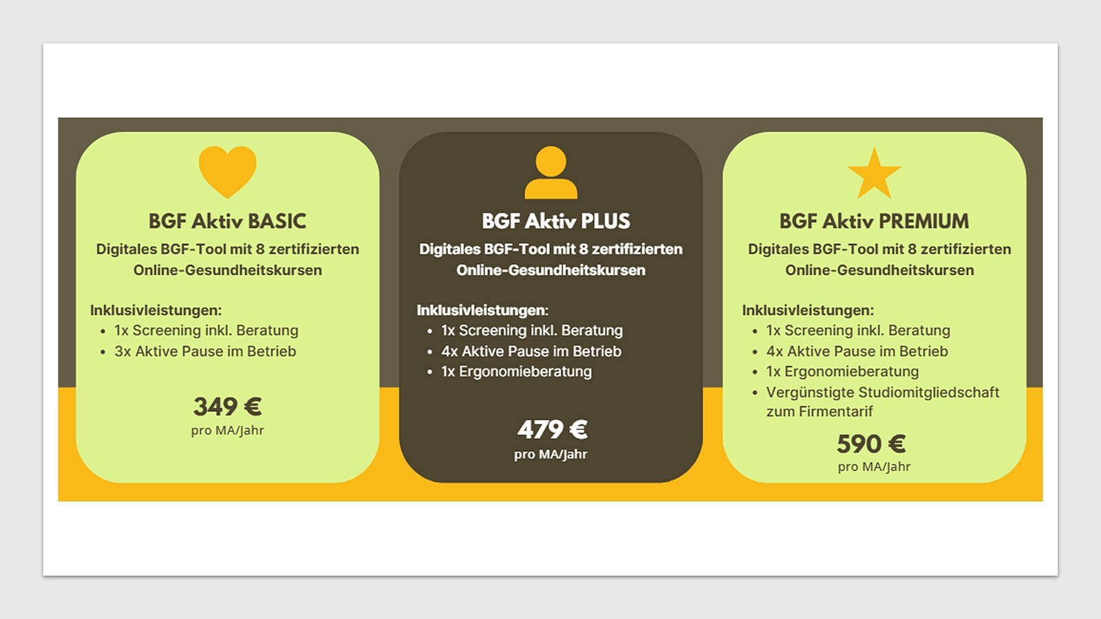 Unsere BGF-AKTIV Pakete für Ihre Bedürfnisse